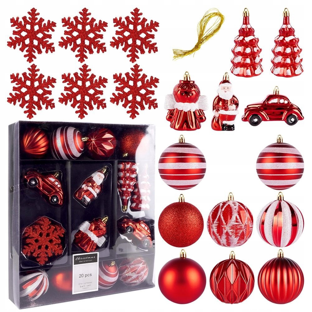 20x Bombki CHOINKOWE świąteczne nietłukące CZERWONE zestaw bombek choinkę