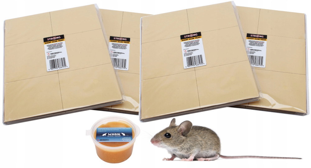 NIEZAWODNY ZESTAW NA SZCZURY I MYSZY: MOCNE LEPY GIANT GLUE 4SZT ORAZ BARDZO INTENSYWNY WABIK 30G