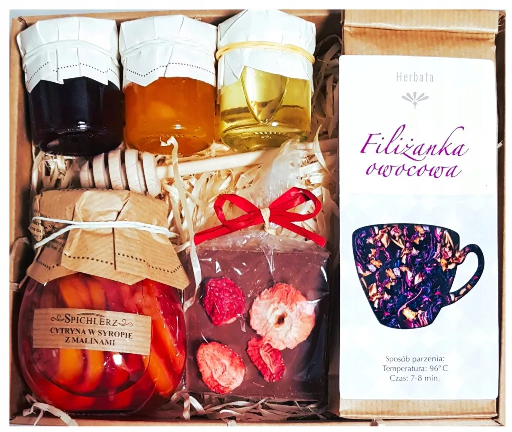 CESTO CONFEZIONE REGALO REGALO REGALO TÈ SCIROPPO LIMONE MIELE LAMPONE