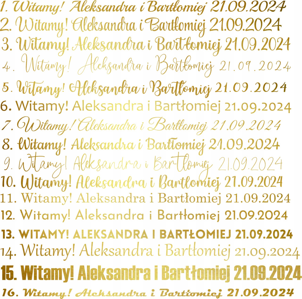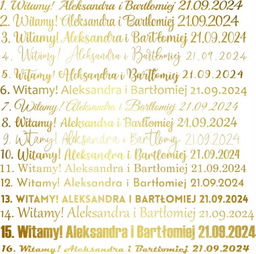 Przykład wiadomości: Ewa i Józek 26.09.2024, Czcionka nr 1, czarna.