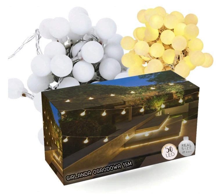 GIRLANDA OGRODOWA 15M sznur świetlny LED 50 sztuk