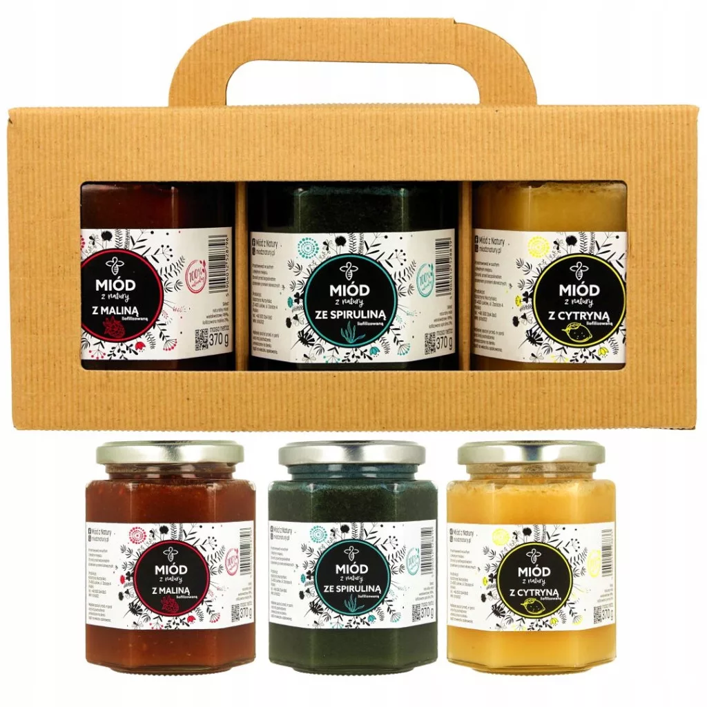Zestaw 3 miodów z liofilizowanymi owocami 3 x 370g