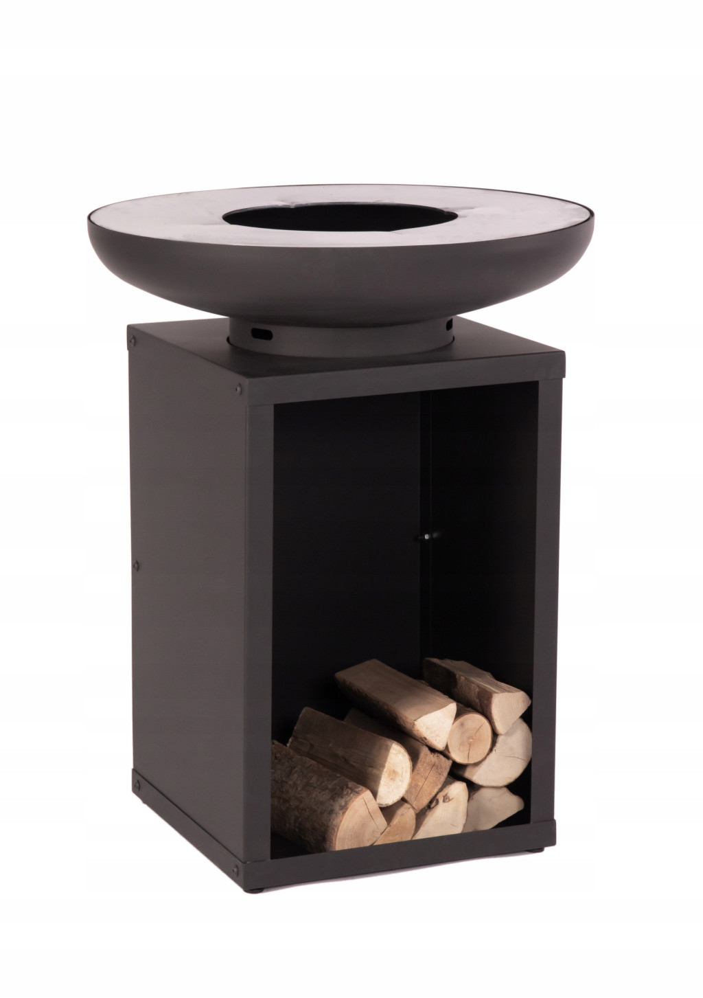 Całość została umieszczona na wygodnej bazie, która równocześnie służy jako półka na drewno. Optymalna wysokość grilla pozwala na swobodne przyrządzanie potraw w bardzo wygodny sposób, a półka na drewno pozwala zaopatrzyć się w odpowiednią ilość opału podczas grillowania. Teraz wszystko będzie zawsze pod ręką!
