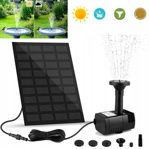 ⛲ 4 różne style wody – ten zestaw solarnych pomp wodnych zawiera 1 oddzielny panel słoneczny, 1 pompę fontannową, kabel 3 m i 4 różne dysze. 4 różne dysze zapewniają 4 różne style efektów fontanny. Może być stosowany do różnych strumieni wody i wysokości wody, dodaj więcej zabawy do ogrodu i spraw, aby Twój ogród wyglądał bardziej komfortowo i zachęcająco.