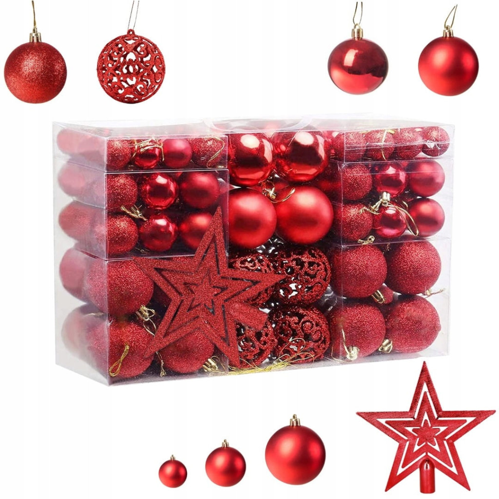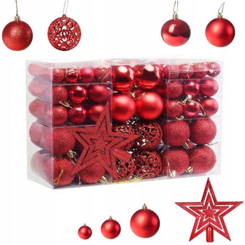Set di palline infrangibili per albero di Natale 6/4/3 cm 101 in 1 - rosso