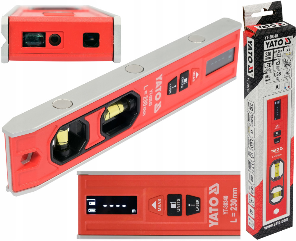 LIVELLA SILURO ELETTRONICA LCD DA 23 cm CON TELEMETRO LASER YATO