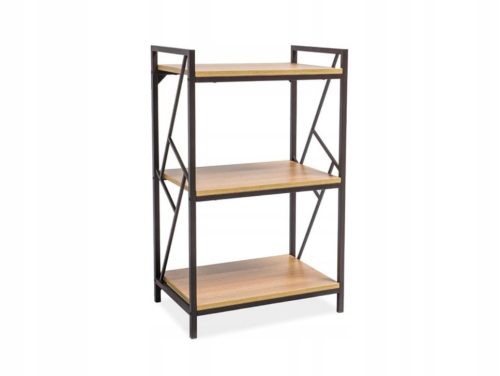 Regał Tablo R3 składa się z trzech poziomych półek z płyty MDF w kolorze dębu naturalnego, które są wsparte na metalowej konstrukcji w kolorze ciemnego brązu. Półki są idealne do przechowywania książek, segregatorów, dokumentów, dekoracji lub roślin. Metalowa rama zapewnia stabilność i wytrzymałość mebla, a także dodaje mu lekkości i elegancji.