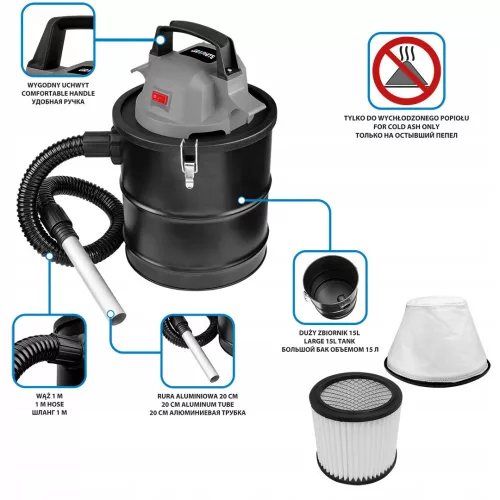 Odkurzacz do popiołu akumulatorowy Energy+ 18 V 58GE125 marki GRAPHITE o pojemności zbiornika15 litrów. Funkcjonuje w oparciu o system akumulatorowy Energy+. Rekomendowana bateria – 4 Ah (czas pracy na 2 Ah wynosi około 17 minut). Urządzenie wyposażone jest w zmywany oraz wielokrotnego użytku filtr typu HEPA oraz materiałowy filtr przeznaczony do pracy z pyłem. Zbiornik ze stali nierdzewnej polecany jest do użytku z wychłodzonym popiołem z kominka, grilla czy pieca. Odkurzacz dobrze sprawdza się również w tradycyjnej roli – do prac porządkowych w domu, warsztacie, garażu, piwnicy czy kotłowni. Do odsysania kamyków, piachu i wiórów. Posiada wąż ssący o średnicy 30 cm i długości 1 m. Długość aluminiowej rury wynosi 20 cm, a pojemny zbiornik wykonano z trwałej stali nierdzewnej. Odkurzacz funkcjonuje na podciśnieniu ≥8 Kpa. Jego waga to 2,23 kg. Oferuje wygodę korzystania – także za sprawą komfortowego uchwytu do transportu. Marka GRAPHITE polecana jest na długie sezony użytkowania.