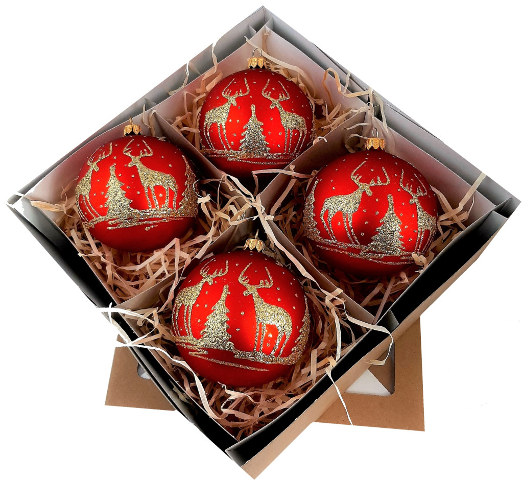 Podana cena jest za komplet czterech sztuk bombek o wymiarach 10 cm.