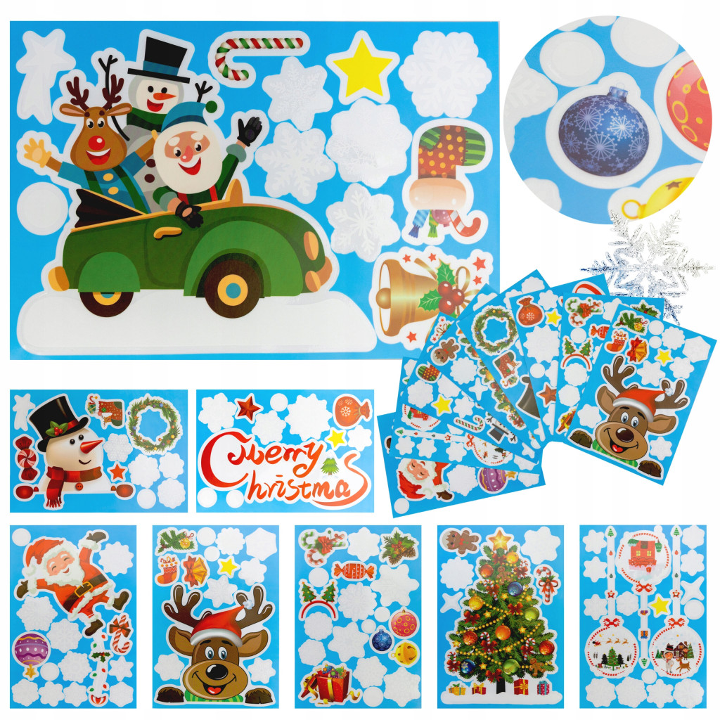 ❤️ZESTAW 8 ARKUSZY KOLOROWYCH NAKLEJEK ŚWIĄTECZNYCH NA SZYBĘ,