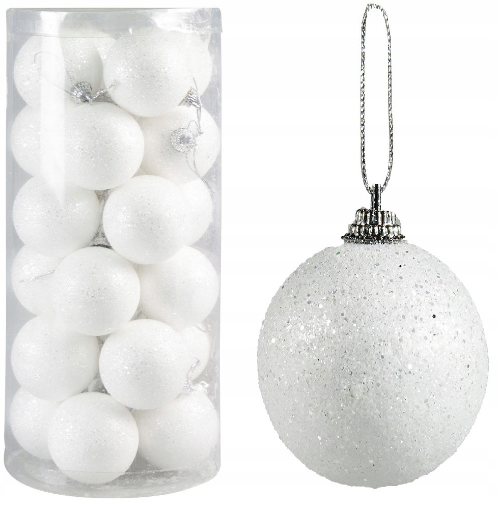 Białe, brokatowe, nietłukące się bombki to obowiązkowy element jaki musi znaleźć się na choince.