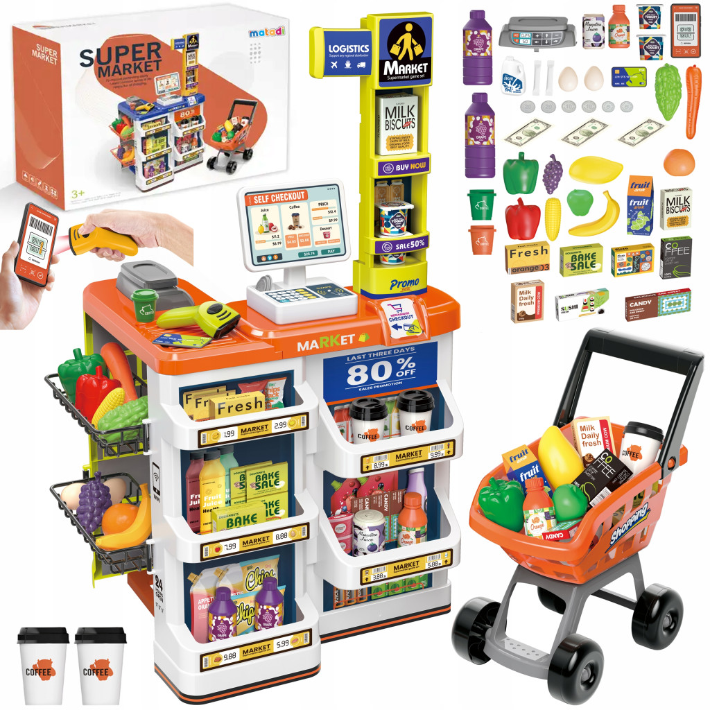 DUŻY MOBILNY SUPERMARKET DLA DZIECI Z AKCESORIAMI