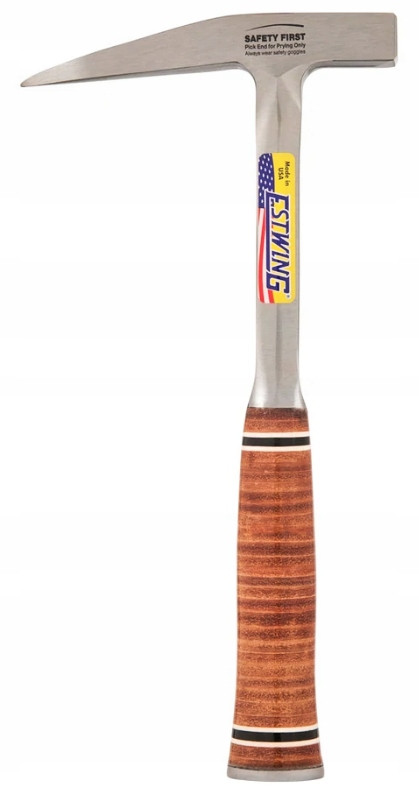 Młotki Geologic firmy Estwing są wykonane z litej stali z pięknym skórzanym uchwytem, ​​a główka i rękojeść są kute z jednego kawałka.