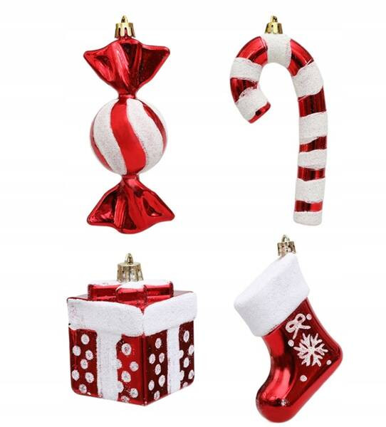 SET SFERE DI NATALE INFRANGIBILI PER ALBERO DI NATALE, CARAMELLE ROSSE, 4 PZ