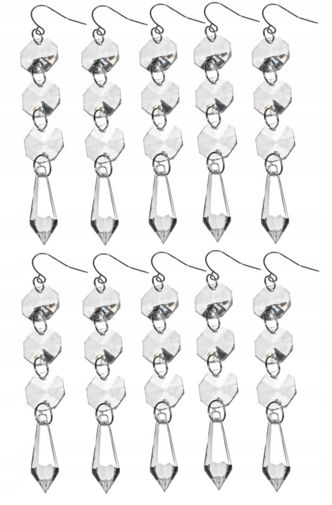 Zestaw akrylowych zawieszek na choinkę ręcznie wykonana z łączników oktagon i groty - sopla,  w kolorze przeźroczystym imitująca kryształ.