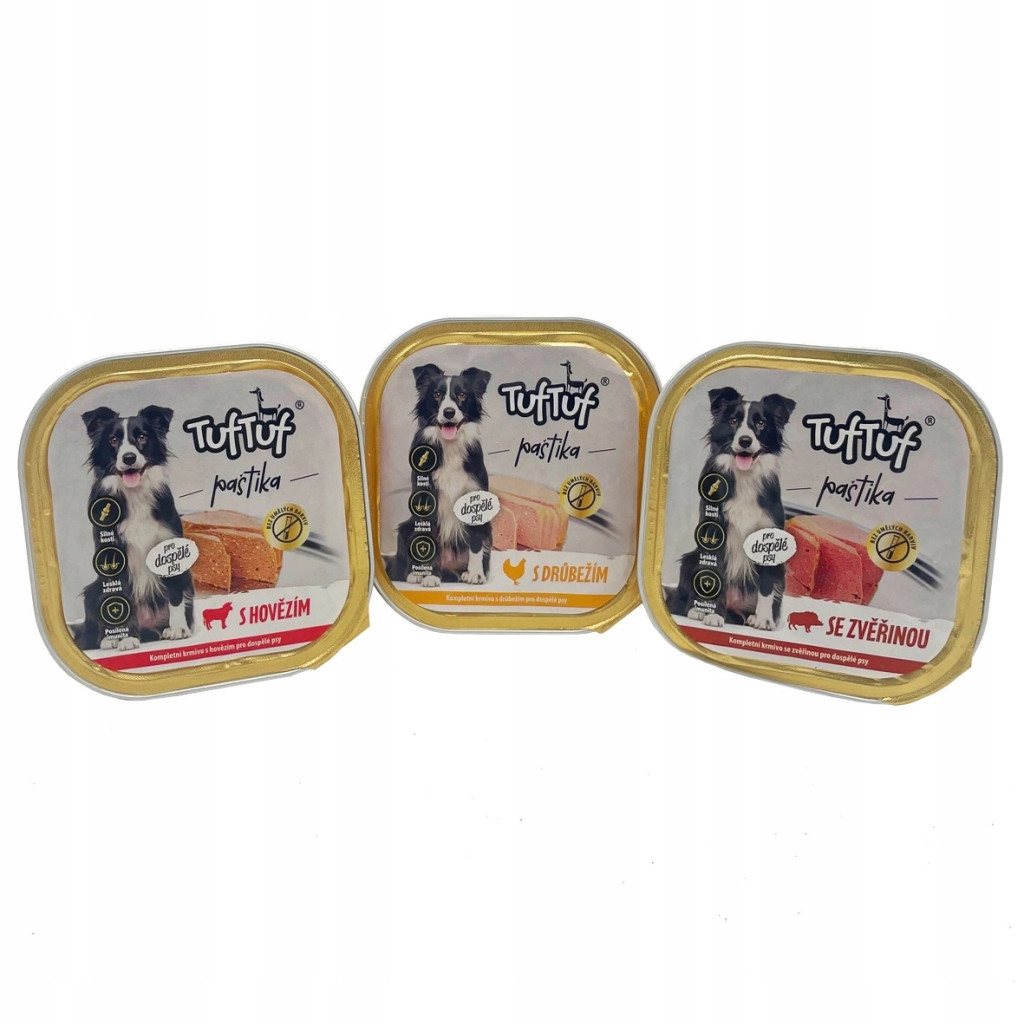 Vassoio TUF 15x300g TUF patè di cibo umido per cani mix di sapori