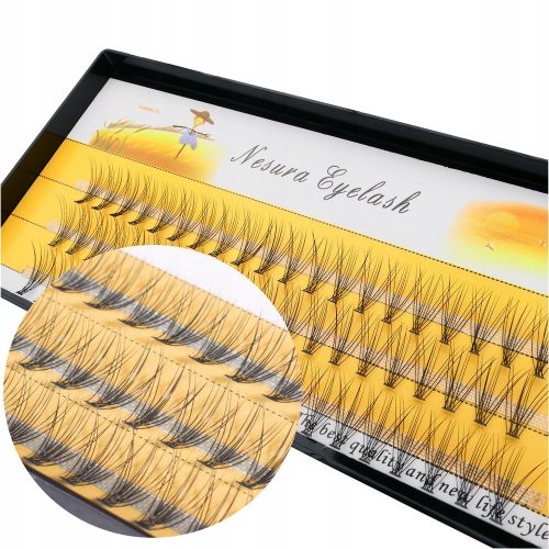 Jedwabne kępki rzęs Nesura Eyelash dzięki kształtowi i technice wytwarzania zapewniają naturalny efekt. Płaski knot umożliwia idealne dopasowanie i przyklejenie kępki, a także przyklejania jedną na drugą. Kępki rzęs łatwo się aplikuje, są lekkie, elastyczne i komfortowe w noszeniu. Włosie zwęża się ku końcówkom jak naturalny włos, dzięki temu kępki idealnie wpasowują się w naturalne rzęsy isą praktycznie nie do odróżnienia. Prawidłowo przyklejone wyglądają naturalnie, wręcz są niewidoczne. Produkt  chętnie stosowany przez profesjonalistów. Wielokrotnego użytku.