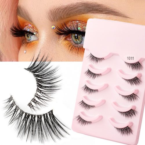 SZTUCZNE RZĘSY POŁÓWKI Z BEZBARWNYM PASKIEM - ZESTAW 5 PAR 1011 ⭐⭐⭐⭐⭐