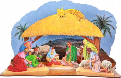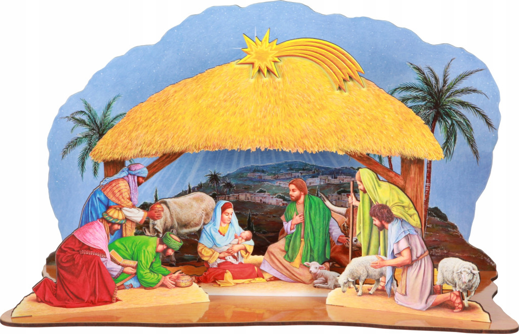 Szopka wykonana jest z płyty hdf z kolorowym nadrukiem wysokiej jakości