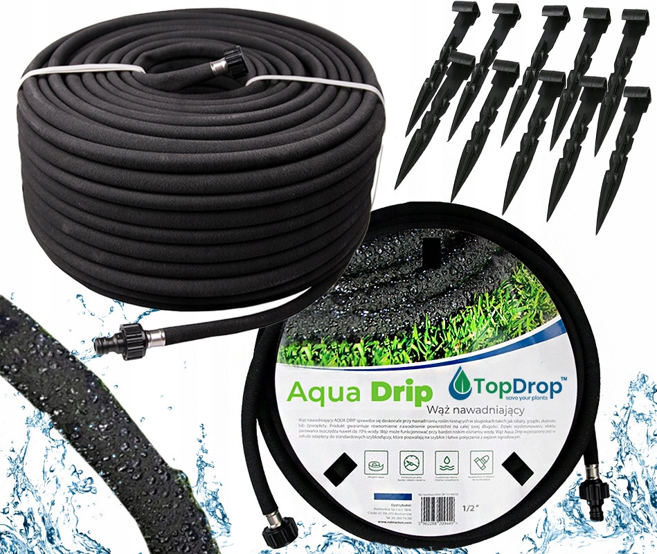 ???? Wąż ogrodowy nawadniający, pocący AQUA-Drip 1/2" 100m + szpilki mocujące 30 szt ????