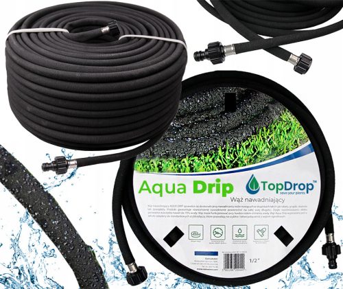 Wąż AQUA DRIP został wykonany z wysokiej jakości gumy, która dzięki swojej budowie jest odporna na niekorzystne warunki atmosferyczne.