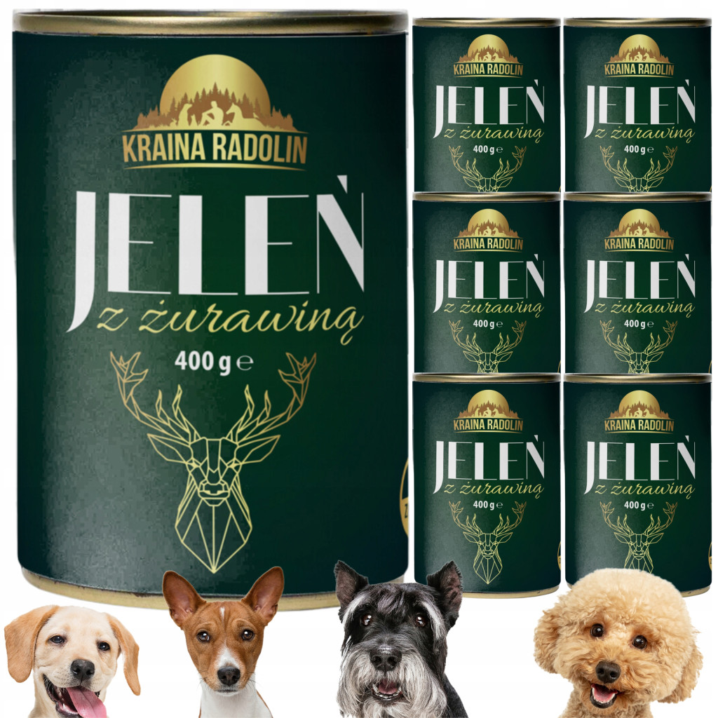 Kraina Radolin Jeleń i żurawina 400g x 6 zestaw 93% mięsa dla psów z nadwrażliwością pokarmową