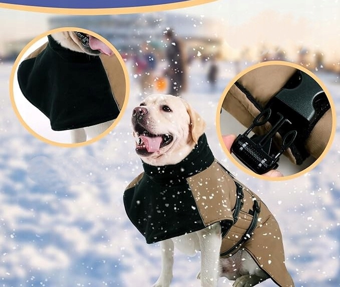 Płaszcz dla psa, ciepły, kurtka dla psa z wysokim kołnierzem i odblaskowymi paskami, wodoszczelny płaszcz zimowy dla psa z podwójną klamrą i zapięciem na rzepy, brązowy.