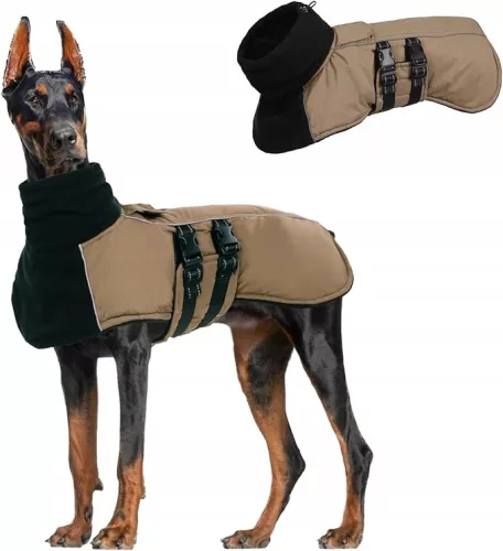 Una giacca invernale riflettente per cani di grossa taglia ti terrà al caldo