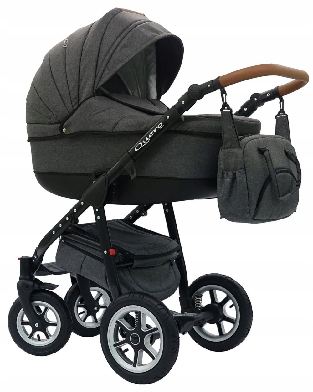 QUERO alu to premierowy model wózka głęboko spacerowego na aluminiowej ramie z innowacyjnym systemem składania.Quero alu ma prowadnicę obszytą eco-skórą,pojemny kosz na zakupy i bardzo lekką plasyikową spacerówkę,posiada kakże regulowane oparcie spacerówki i oparcie gondoli regulowane z zewnątrz dzięki nowoczesnemu systemowi.Ponadto regulowana jest wysokość prowadnicy i podnóżka.Gondole i spacerówkę można zamontować przodem lub tyłem do kierunku jazdy.Każdy z elementów posiada osobne przykrycie na nóżki