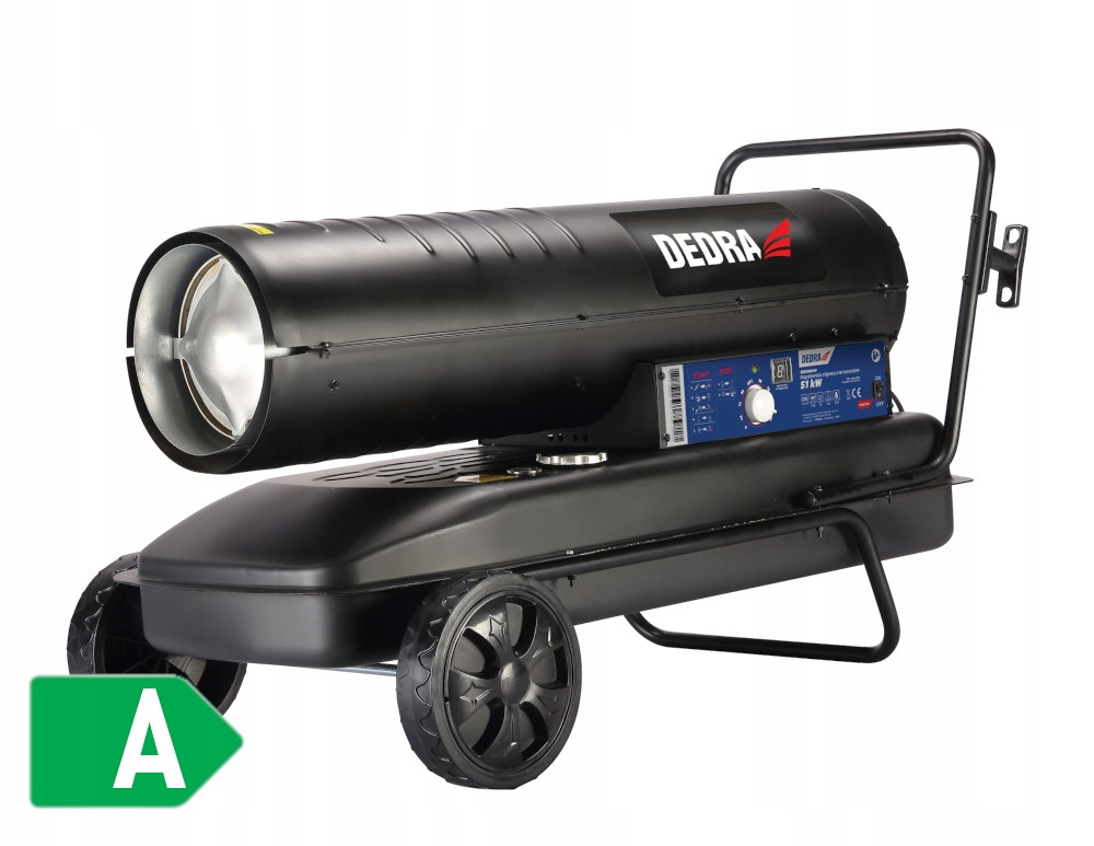 Nagrzewnica olejowa to urządzenie służące, jako dodatkowe źródło ciepła do ogrzewania pomieszczeń o dobrze działającej wentylacji np. w garażu, warsztacie, magazynie czy na terenie budowy. Wbudowany termostat utrzymujący zadaną temperaturę na stałym poziomie. Dla zapewnienia bezpieczeństwa urządzenie zostało wyposażone w nienagrzewającą się metalową obudowę, zabezpieczenie przed przegrzaniem oraz komorę spalania wykonaną ze stali nierdzewnej. Dzięki zamontowanym kołom jezdnym idealnie nadaje się do transportu