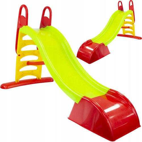 Duża zjeżdżalnia ogrodowa dla dzieci od 1 roku. Łagodny zjazd o długości 180 cm zapewni doskonałą zabawę. Możliwość zraszania poprzez podłączenie węża ogrodowego. Antypoślizgowe schodki i wygodne uchwyty ułatwiają dziecku wchodzenie i gwarantują bezpieczeństwo. Dzięki szerokiej podstawie zjeżdżalnia jest stabilna. Wysokiej jakości tworzywo zapewnia dobrą wytrzymałość i trwałość kolorów, długość ślizgu 180 cm.