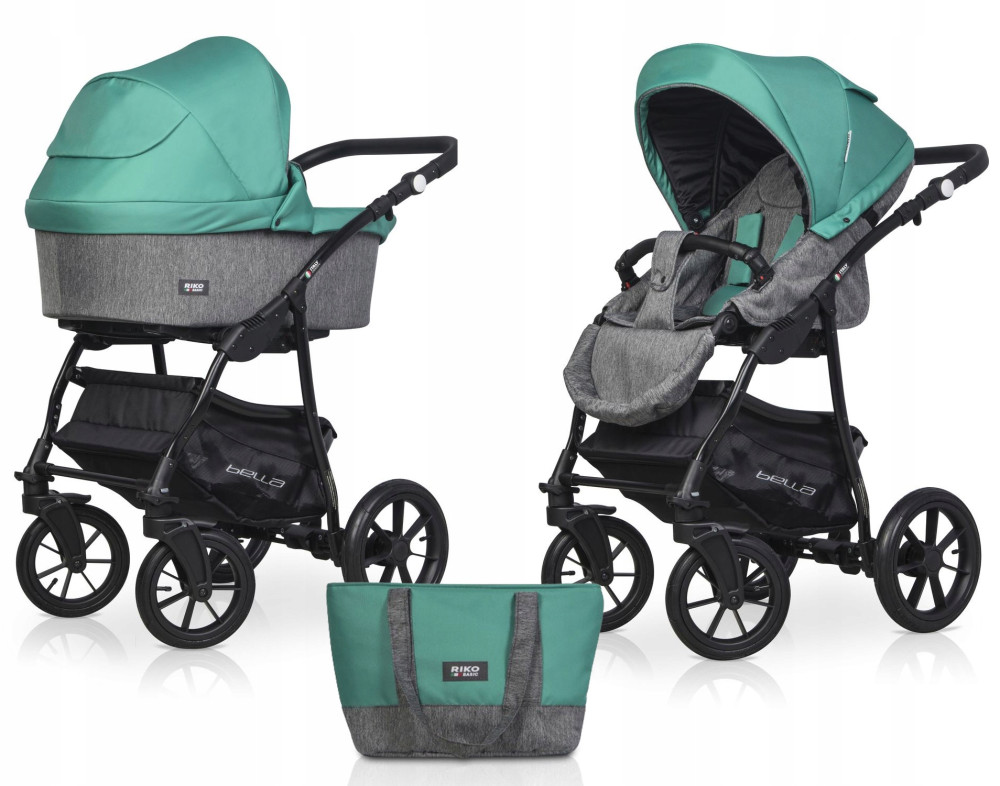 Wózek 2w1 dziecięcy BELLA Riko Basic POMPOWANE KOŁA TORBA OCIEPLACZ ZESTAW
