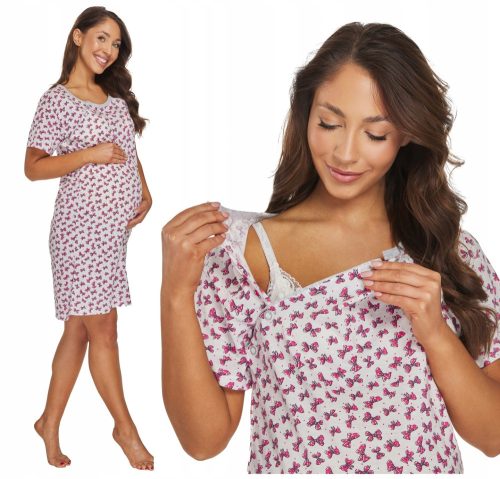 Camicia da notte per la pappa e il parto, in cotone con zip, fiocchi XL