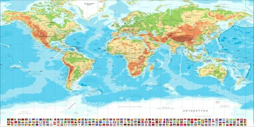Mata ochronna mata na biurko podkładka mapa świata i flagi antypoślizgowa w języku polskim.