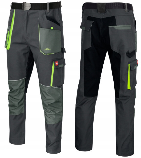 Zastosowanie elastanuwpływa na wyjątkową elastyczność spodni co znacząco poprawia komfort ich noszenia. Spodnie sprawdzą się doskonale w pracy w każdych warunkach dzięki dodatkowym wzmocnieniom z tkaniny OXFORD i elementom odblaskowym. Duża ilość ryglówek w miejscach szczególnie narażonych na rozprucie.Zaprojektowane, by sprostać najbardziej wymagającym klientom!