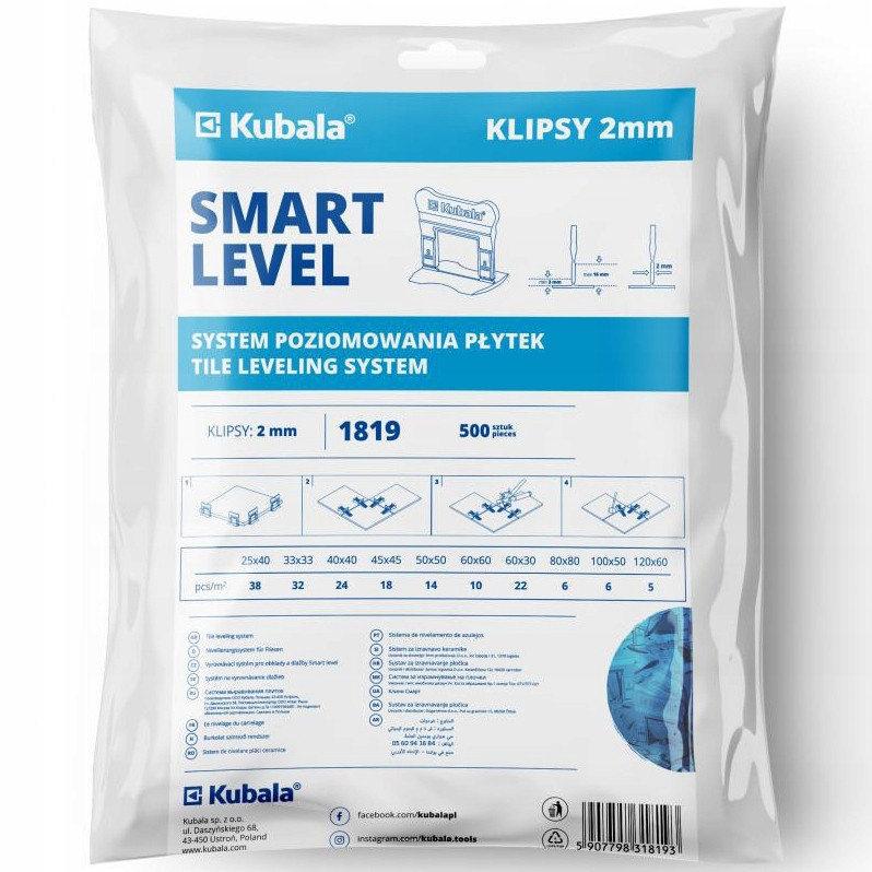 KUBALA 1819 SYSTEM POZIOMOWANIA KLIPSY 2mm 500szt.