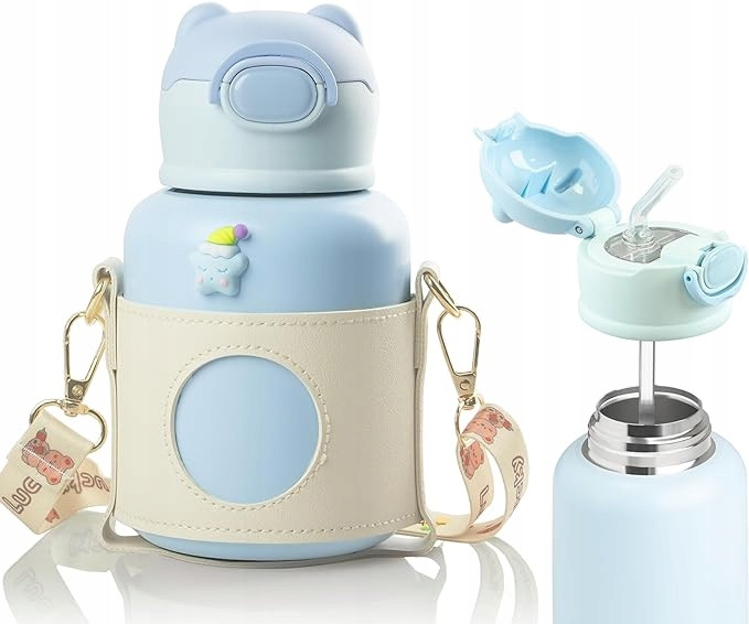 MU Termiczna butelka na wodę dla dzieci ze słomką, 500 ml sportowa butelka na wodę dla dzieci utrzymująca ciepło i zimno, stalowa butelka na Wodę dla dzieci, butelka na wodę dla dzieci w wieku przedszkolnym, metalowa butelka na wodę dla dzieci.