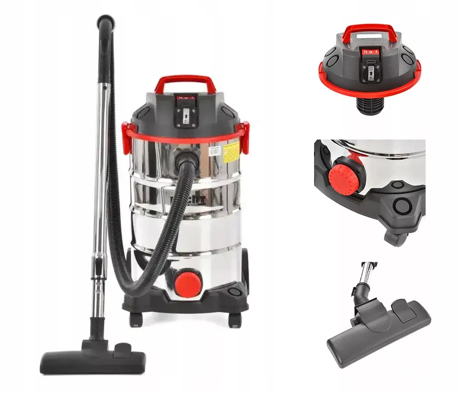 Odkurzacz dostarczany jest z metalową rurą teleskopową, uniwersalną ssawką oraz elastycznym wężem z tworzywa sztucznego. Zawiera również papierowy filtr HEPA, rękaw na filtr HEPA przedłużający żywotność filtra, mokry filtr próżniowy i 1 kawałek papierowego worka.