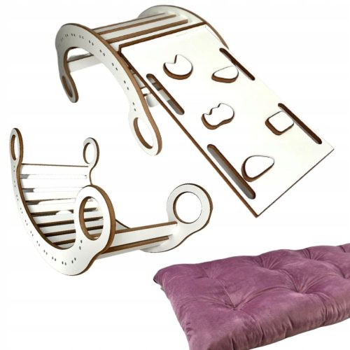 Drewniany Bujak Montessori + Zjeżdżalnia + Ścianka wspinaczkowa + Poduszka Różowa - wszechstronna, kreatywna zabawka dla Twojego dziecka