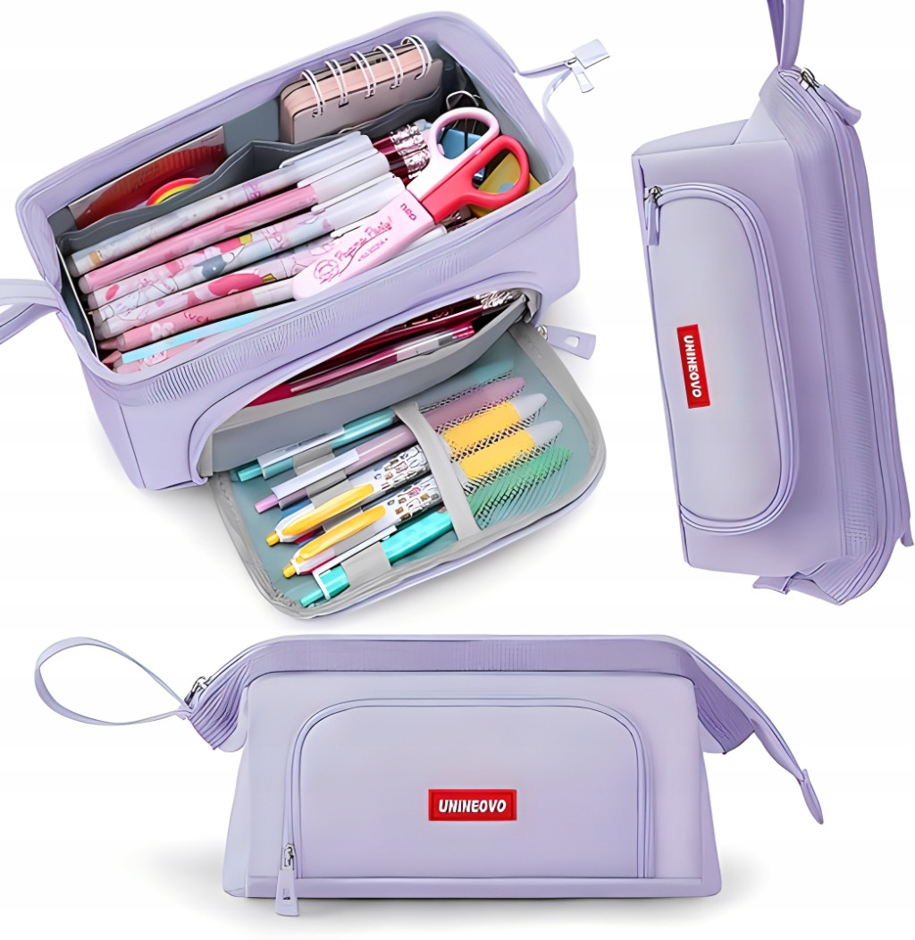 ten duży piórnik szkolny zapewnia dużo miejsca do przechowywania przyborów szkolnych i innych akcesoriów. Elastyczne przegródki na długopisy, ołówki i pędzle, siateczkowe i na karty kieszenie na drobne przedmioty, takie jak gumki, temperówki, notatki i bilety, a główna przegroda na długopisy, ołówki, kalkulatory i inne akcesoria.