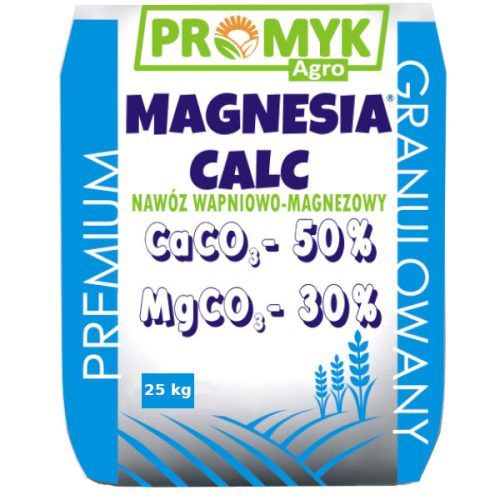 Magnesia-Calc to nawóz mineralny wapniowo-magnezowy w formie granulowanej uzyskiwany w wyniku oczyszczania i rozmielania skał dolomitowych, które są następnie poddawane procesowi granulacji. Produkt ten spełnia bardzo ważne funkcje nawozowe, zmniejsza zakwaszenie gleby, tym samym polepsza warunki wzrostu roślin oraz dostarcza do gleby niezbędny magnez. Dodatkowo poprawia odporność roślin na przemarzanie, reguluje proces asymilacji, ułatwia pobieranie składników pokarmowych oraz jest źródłem plonotwórczego wapnia i magnezu.
