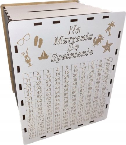 Algorytm: codziennie wkładamy do skarbonki dowolną kwotę wskazaną na pudełku i wykreślamy tę kwotę z tabeli. Po przekreśleniu wszystkich liczb otrzymasz 66795 zł.