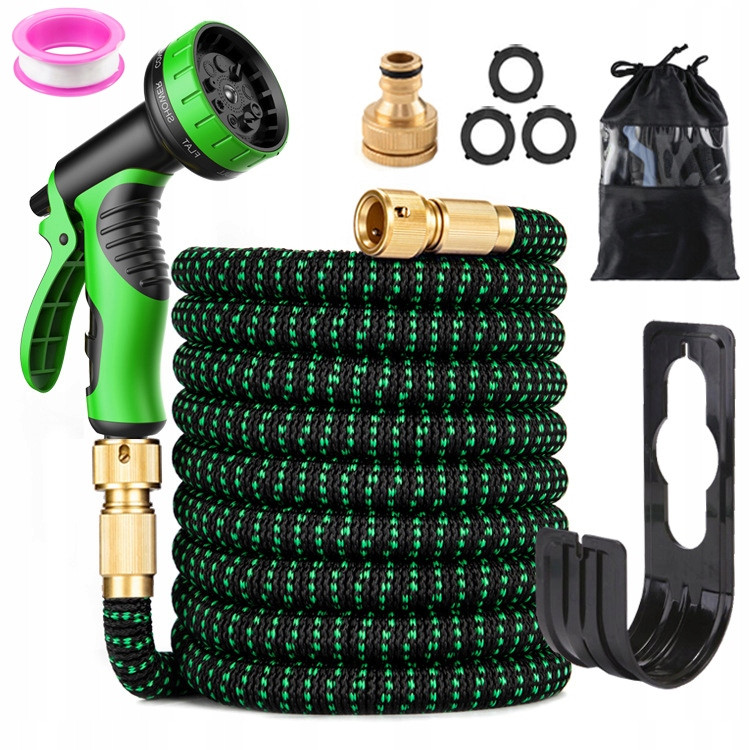 WĄŻ OGRODOWY ELASTYCZNY ROZCIĄGLIWY 7,5m  + ZŁĄCZKI + PISTOLET Premium