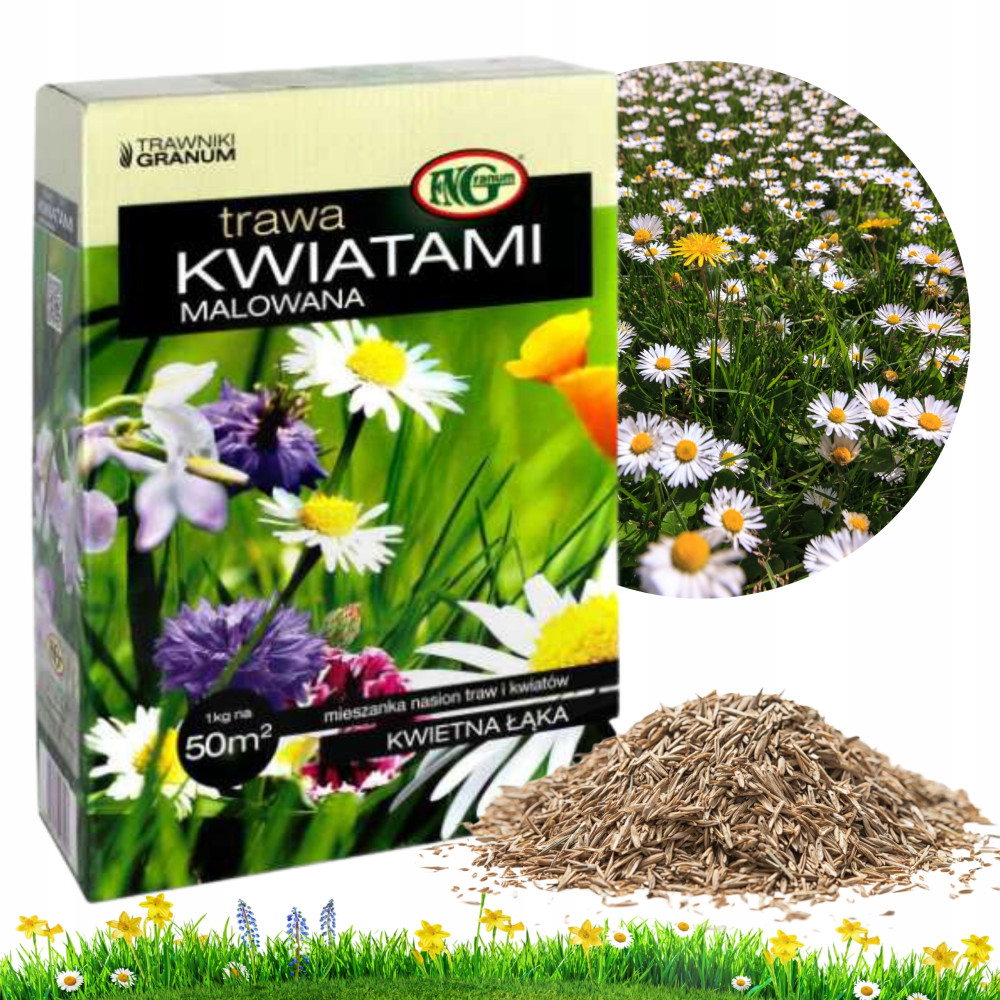 TRAWA Kwiatami Malowana Łąka Kwiatowa Ogrodowa Miododajna Nasiona 1kg