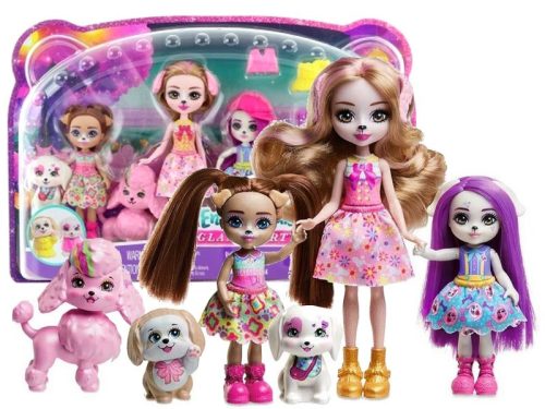 ENCHANTIMALS GLAM PARTY DOG FAMILY DOLL set con la bambola Dwyla Dog