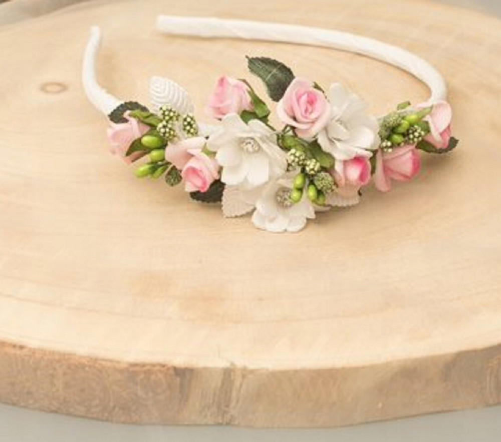 Lekka i wygodnaopaska do włosów, ręcznie ozdobiona lśniącymi akcentami oraz pięknymi kwiatami zachwyci przy wielu okazjach. Idealnie pasuje na Biały Tydzień.