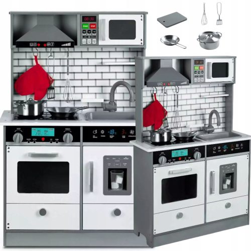 KUCHNIA DLA DZIECI DREWNIANA AKCESORIA + ŚWIATŁO LED GARNKI Z AKCESORIAMI