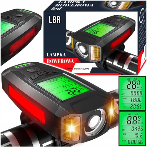 LAMPKA LAMPA ROWEROWA Z LICZNIKIEM ALARMEM KLAKSON LICZNIK ALARM