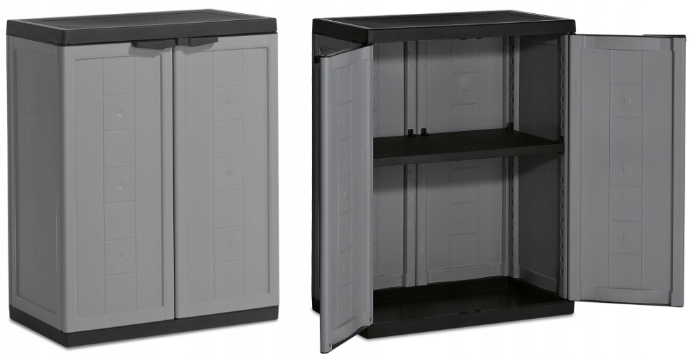 Niska szafa Jolly wykonana została z wysokiej jakości tworzywa sztucznego, co zapewni jej trwałość na lata. Wewnątrz znajduje się praktyczna półka o nośności 15 kg. Dzięki regulowanej półce możliwe jest szybkie i proste spersonalizowanie mebla pod indywidualne potrzeby. Kolejnym atutem niskiej szafy Jolly są ergonomiczne, podwójne uchwyty gwarantujące pewny i wygodny chwyt, które można dodatkowo zabezpieczyć kłódką. Niska szafa Jolly zachwyca swoim nowoczesnym i uniwersalnym wykończeniem, dzięki któremu idealnie komponuje się ona z każdą aranżacją.