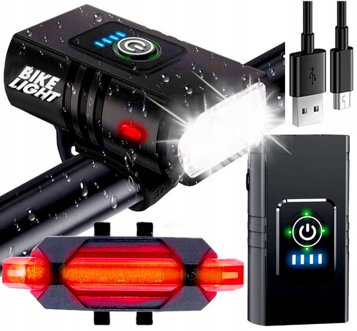 WODOODPORNA LAMPKA ROWEROWA 800 lumenów Z POJEMNYM AKUMULATOREM + TYLNA LAMPKA LED